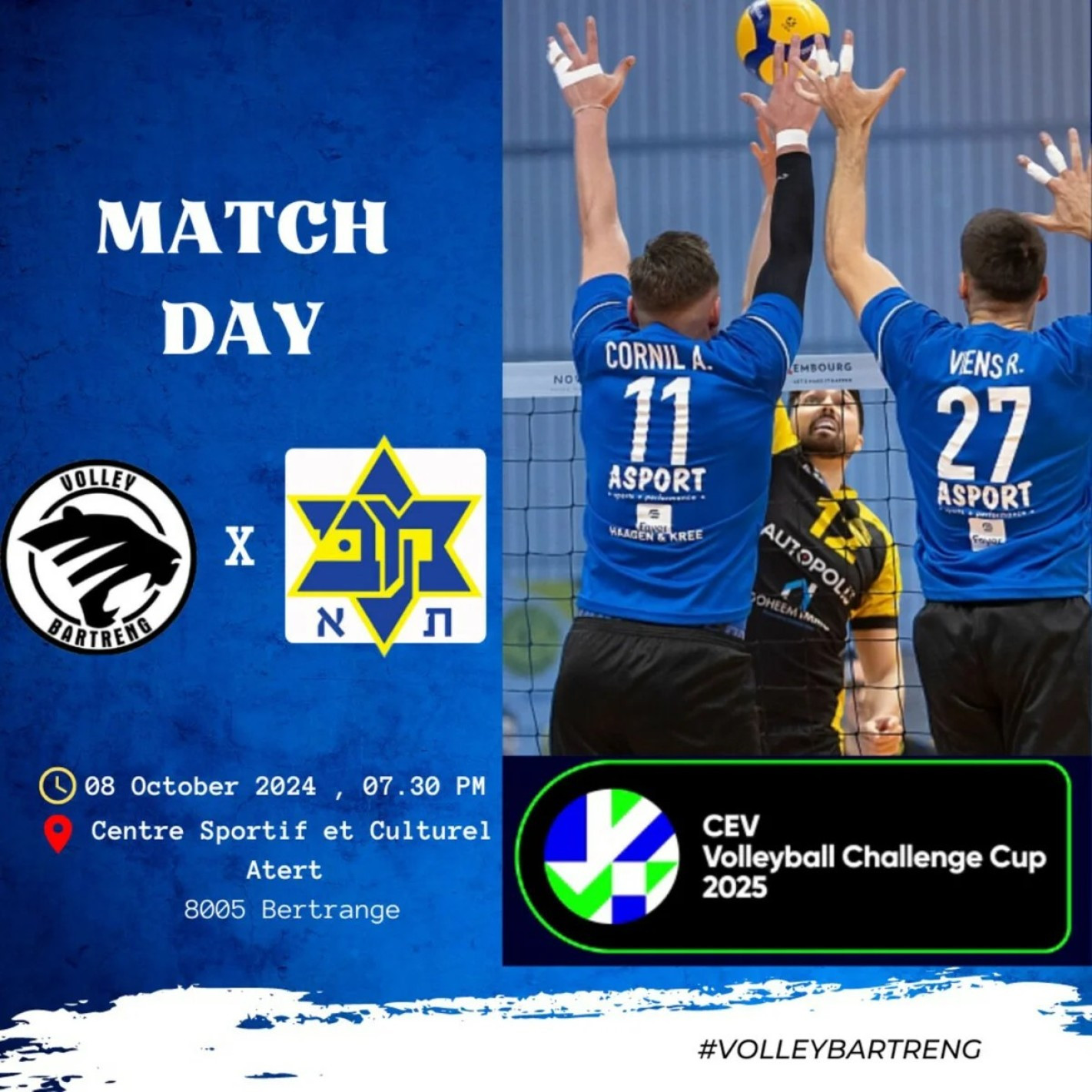 CEV Challenge Cup – Volley Bartreng vs Maccabi Tel Aviv
