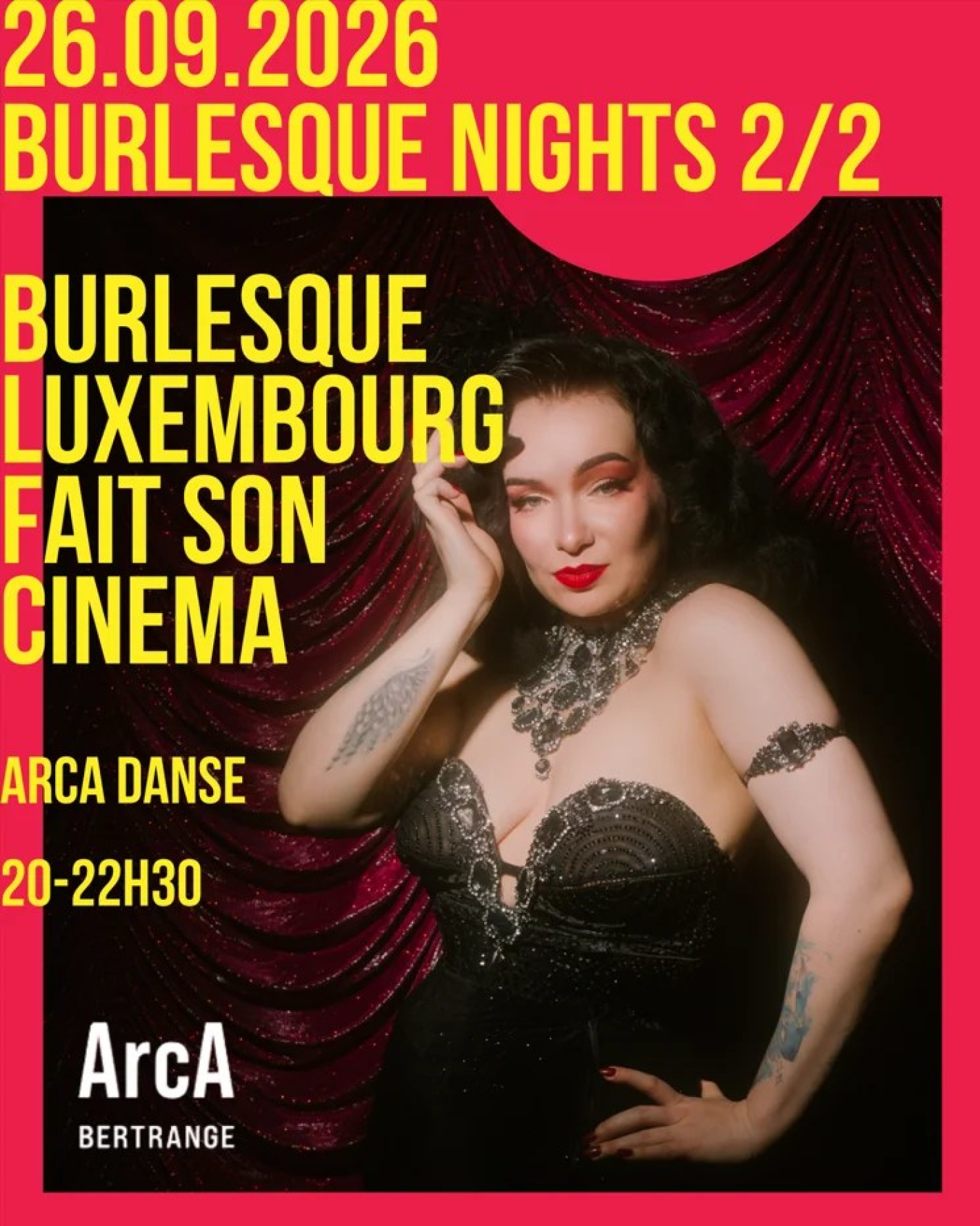 Après les mots, place au show, aux plumes et aux paillettes ! En collaboration avec l’école de danse Burlesque Luxembourg, l’ArcA accueillera sur sa scène une succession d’incroyables artistes burlesques locaux et internationaux.